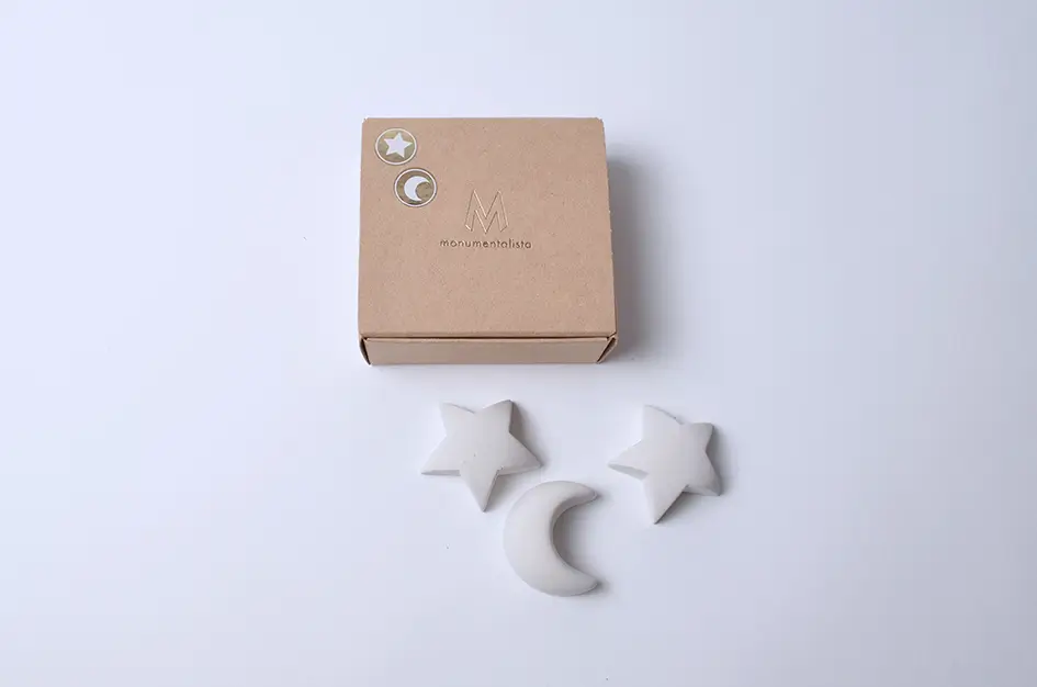 De Gedenksteen klein – Maan en Ster wit zijn verpakt per 3 stuks en hebben een afmeting van 4 x 3,7 x 1,2 cm, Ze zijn gemaakt van gietsteen (beton). De Gedenksteen klein – Maan en Ster wit is ook beschikbaar per 12 stuks.