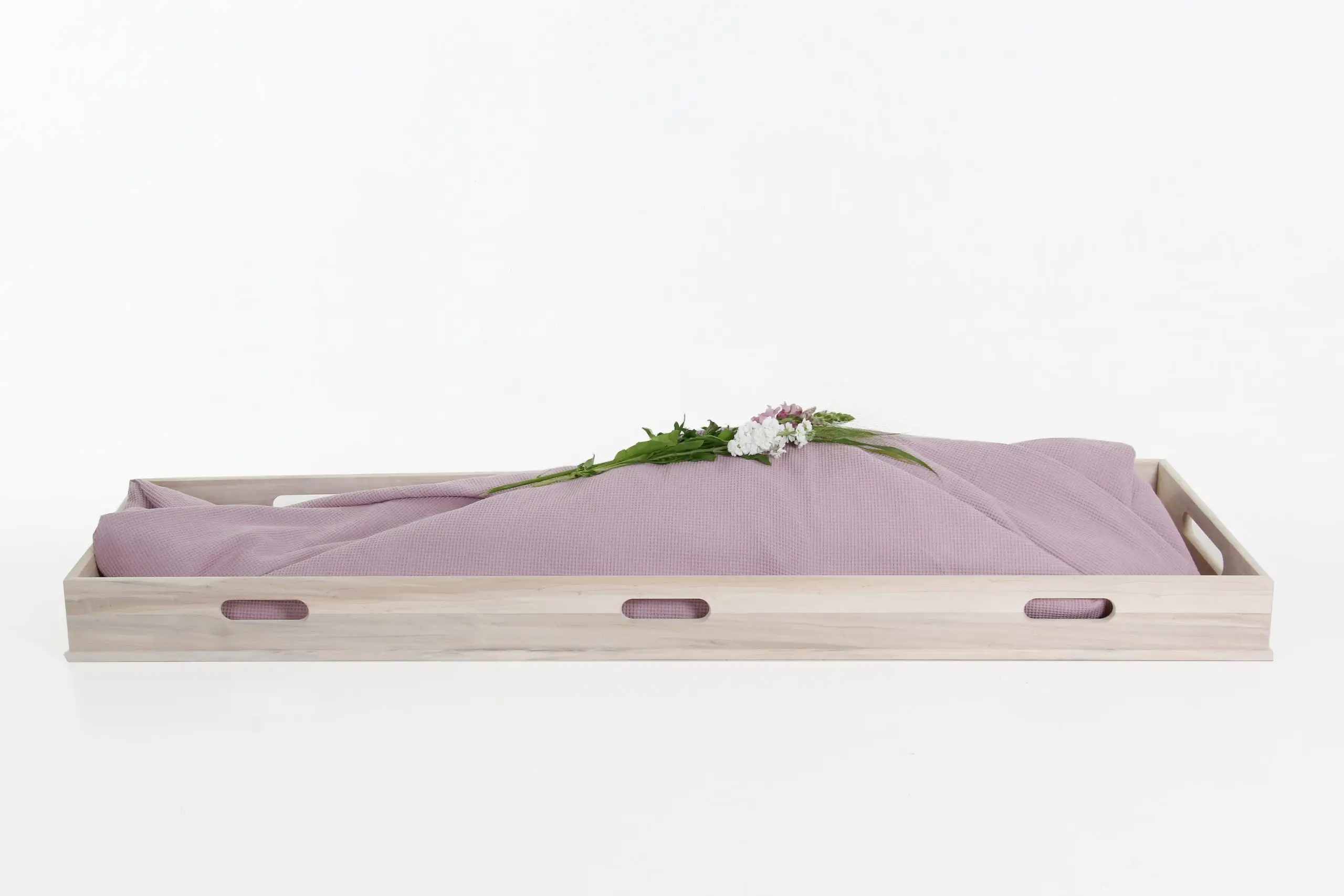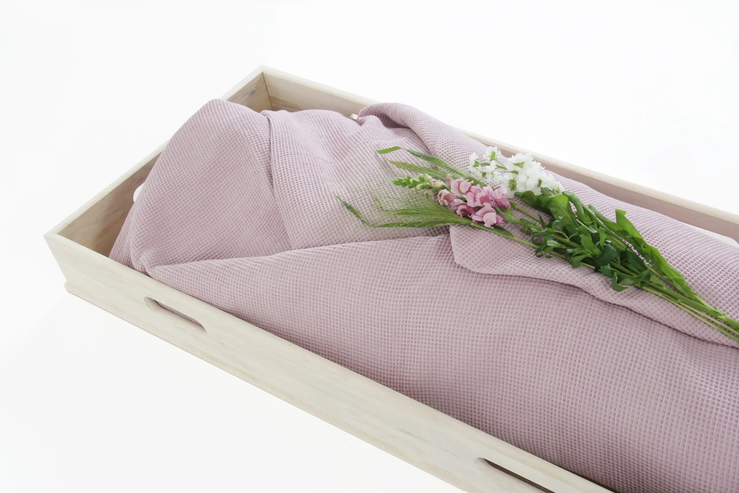 warm en sereen geheel, wat bijdraagt aan een liefdevol en respectvol laatste afscheid. De stof voelt prettig aan en heeft een rustige, ingetogen uitstraling die past bij een persoonlijk en intiem moment. Geef je de voorkeur aan een andere tint? Deze lijkwade is verkrijgbaar in