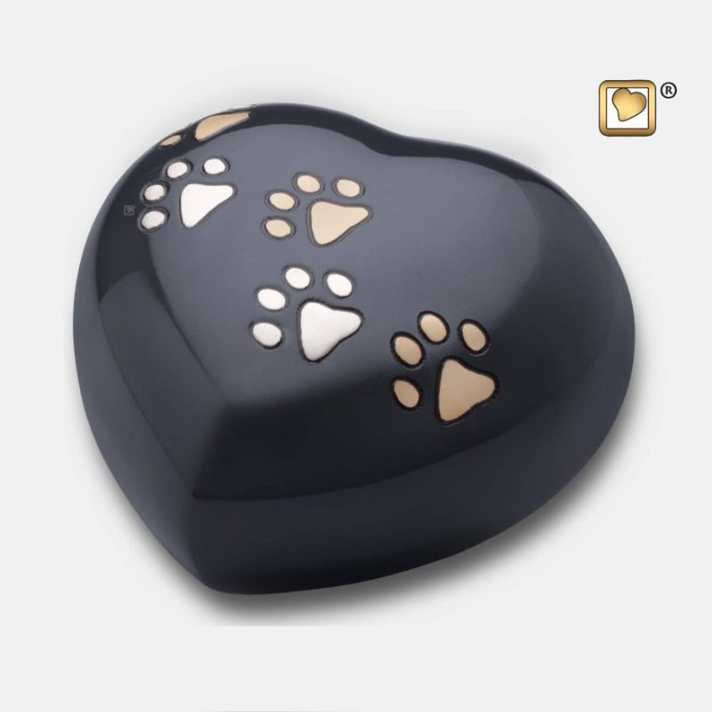 Dieren urn – Double paws | heart | 0,80 liter | Midnight Brushed pewter Large